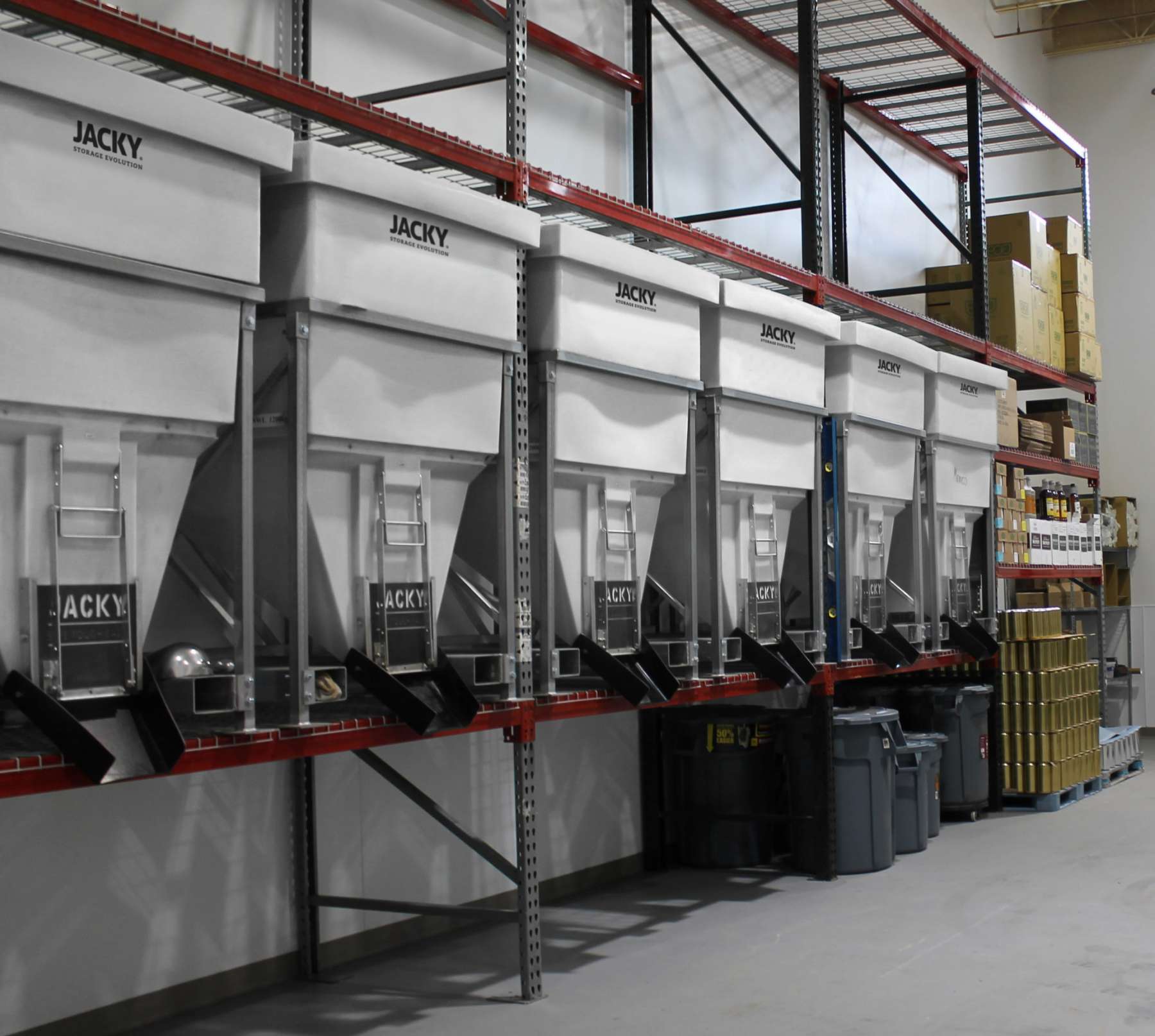 JB1600 | 1600L / 56 cu. ft Side Discharge JACKY Bin | 1200kg / 2600lb | 58½" | 46½" | 77" |